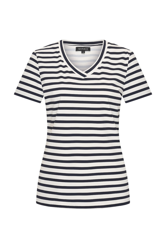 Mi piace T-shirt V Hals Stripe Dark Blue