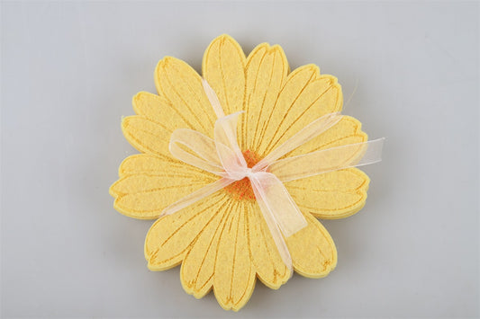 Vilten onderzetter set van 6 12cm geel