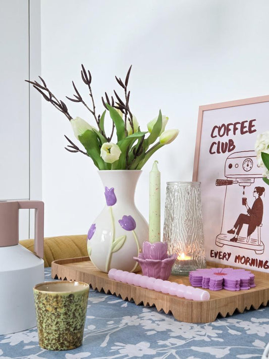 Vaas tullipe wit/lila aardewerk