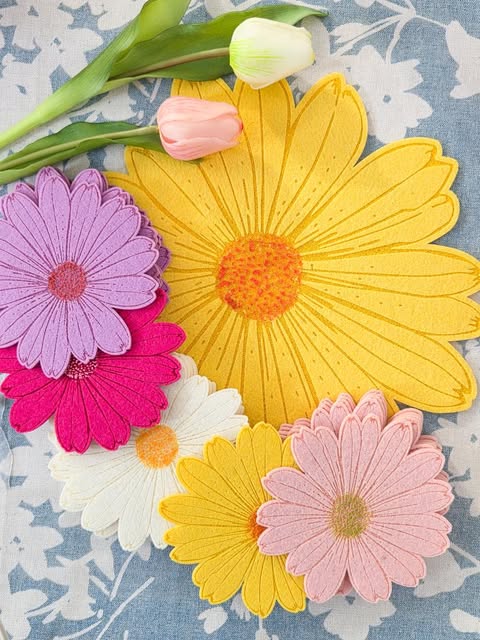 Vilten onderzetter set van 6 12cm roze