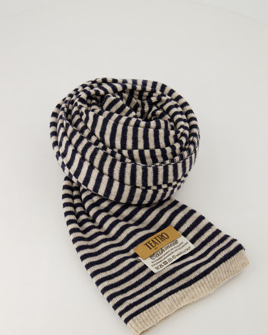 Cashmere sjaaltje Kaia gestreept Donkerblauw/creme