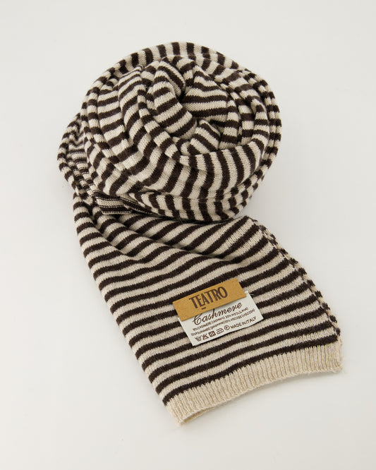 Cashmere sjaaltje Kaia gestreept Donkerbruin/creme