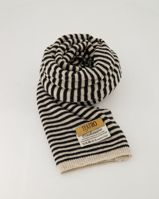 Cashmere sjaaltje Kaia gestreept Zwart/creme