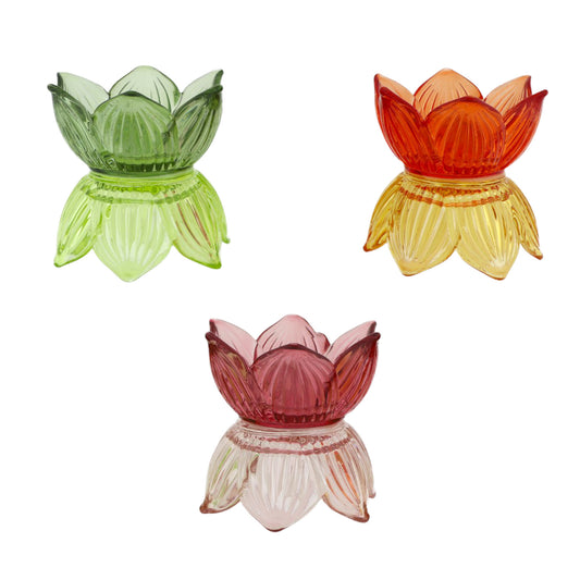 Waxinehouder bloem roze met groen hoog