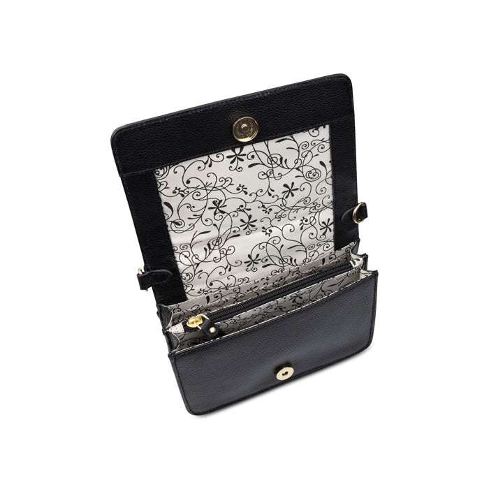 Het hoofdvak sluit met een magneet en biedt ruimte voor je dagelijkse essentials. Binnenin vind je meerdere vakken om je spullen overzichtelijk op te bergen. De afneembare kettingband in combinatie met het leren schouderriempje geeft je de mogelijkheid de tas zowel chic als casual te dragen.