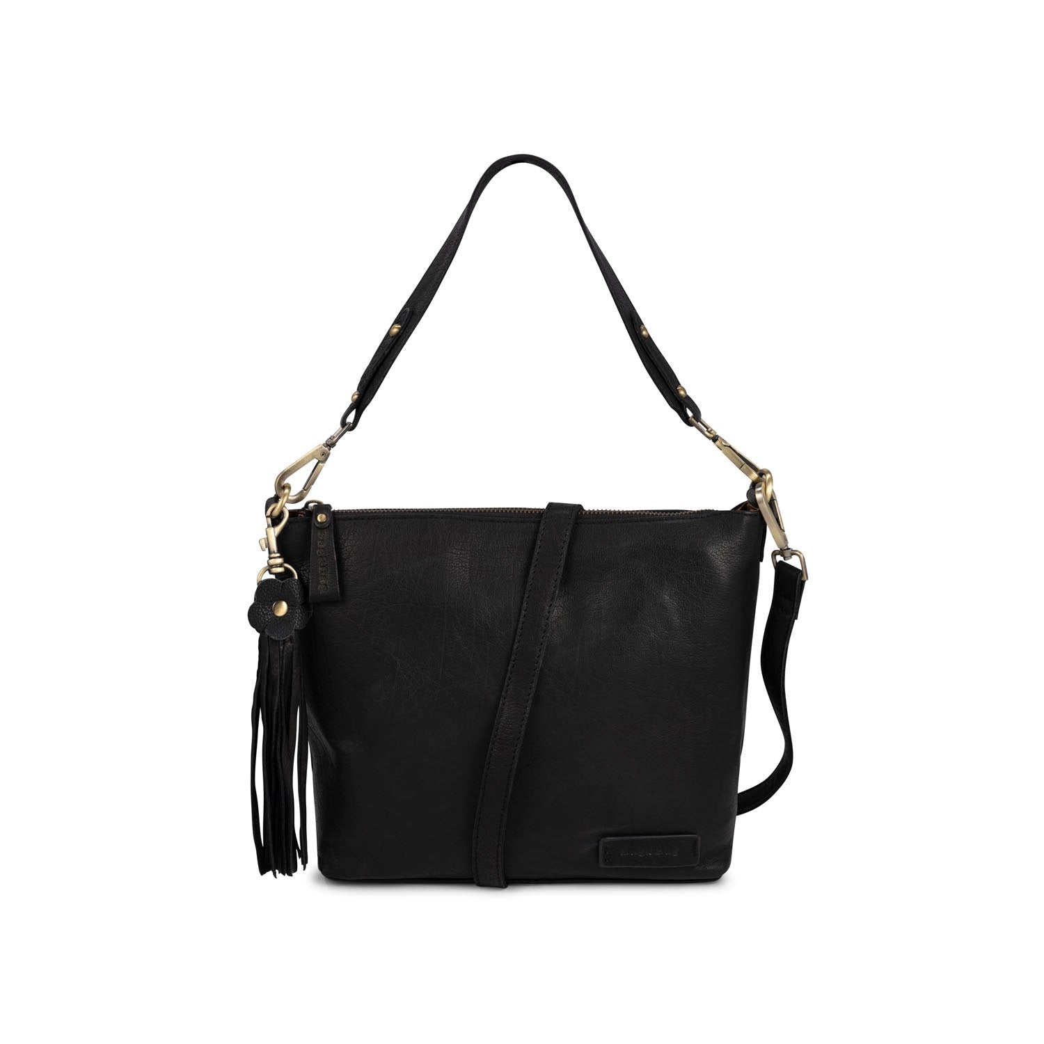 Het hoofdvak sluit met een rits en binnenin vind je meerdere vakken en een extra ritsvakje om je essentials overzichtelijk op te bergen. Afgewerkt met de herkenbare Bag2Bag details en een speelse leren kwast.