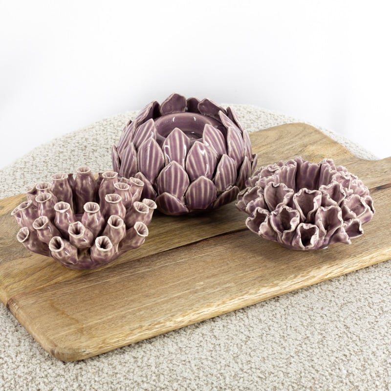 Waxinehouder keramiek buds lila